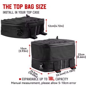- Durable and waterproof motorcycle luggage bag for BMW GS Adventure models. Expandable 20L top case bag with secure straps and ergonomic carry options.