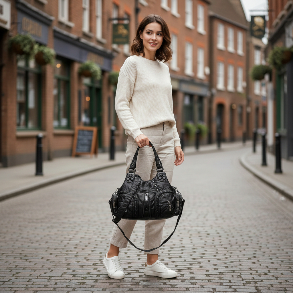 For added versatility, the handbag includes a removable and adjustable strap, allowing you to wear it as a shoulder bag or crossbody depending on your style and comfort. The secure zipper closure keeps your belongings safe, making it ideal for both work and travel.