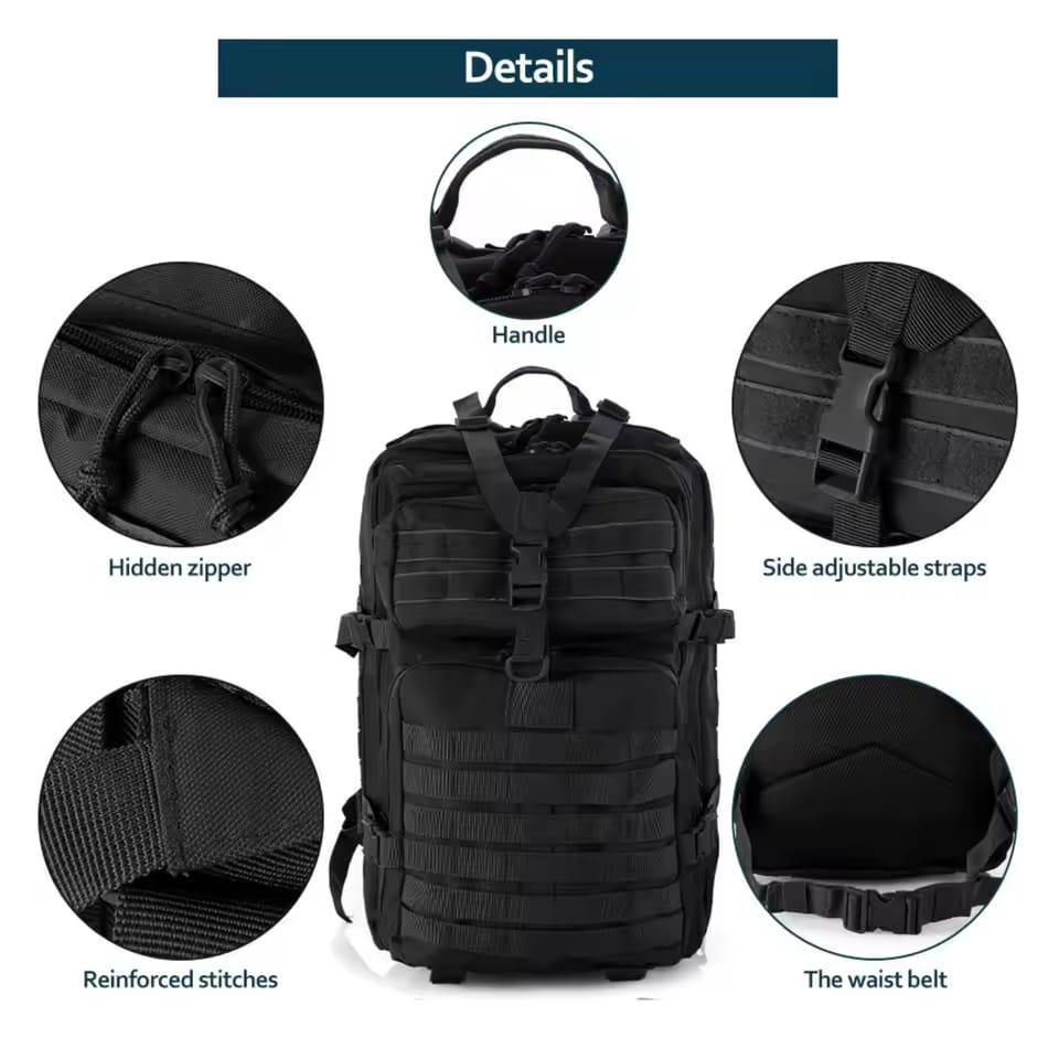 Gear up for your next adventure with this 25L–50L Tactical Sports Backpack, designed for durability, functionality, and comfort. Crafted from high-quality Oxford nylon, this backpack is waterproof, wear-resistant, and ideal for outdoor activities such as hiking, trekking, fishing, hunting, camping, and travel.