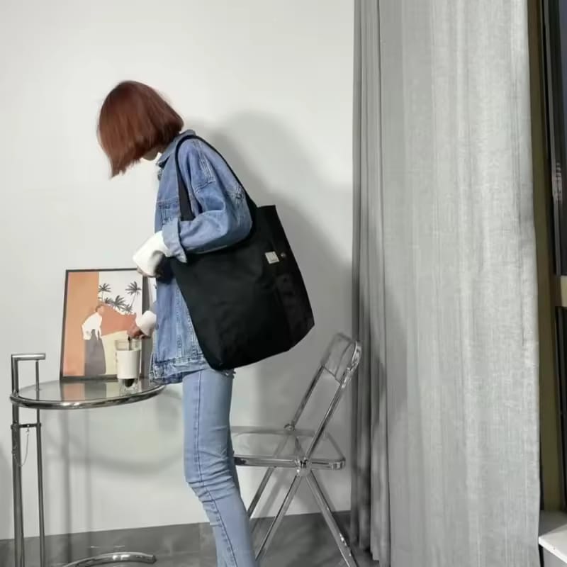 The bag features a dedicated computer compartment to keep your laptop or tablet safe, while the dual strap setup offers versatile carrying options. The zipper closure ensures your belongings stay secure, and the Japanese-inspired minimalist design adds a touch of sophistication.
