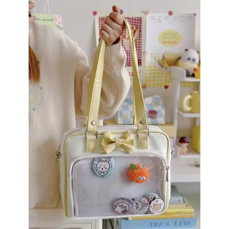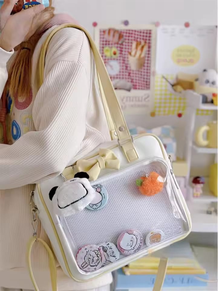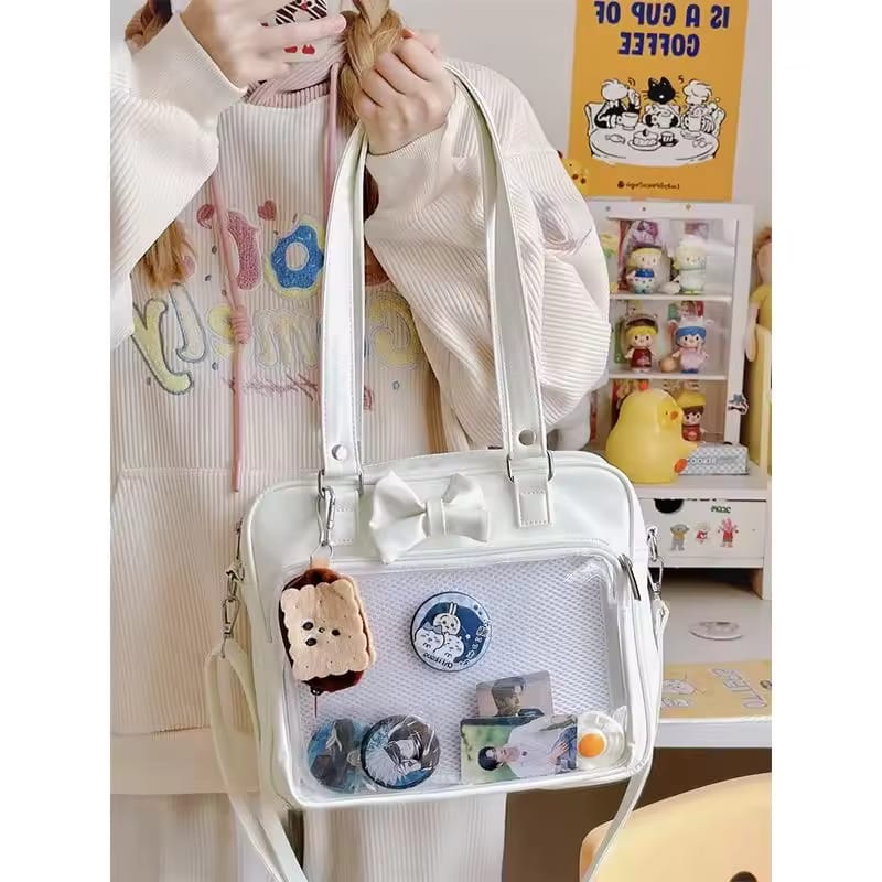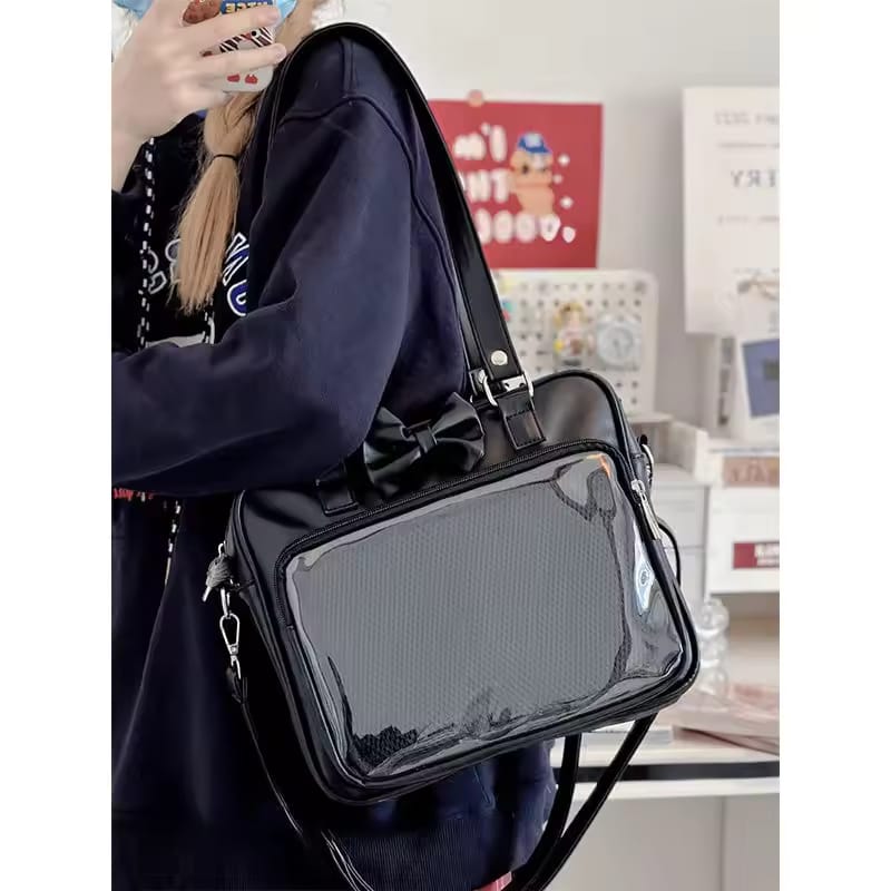Japanese Style Kawaii PU Leather Ita Bag – Transparent Pocket Lolita Shoulder Tote Handbag for Women and JK Girls