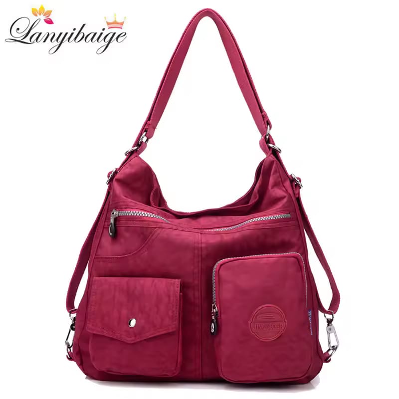 Stylish and waterproof nylon crossbody tote for women, featuring a large capacity, soft design, and multiple pockets—perfect for everyday use or travel.