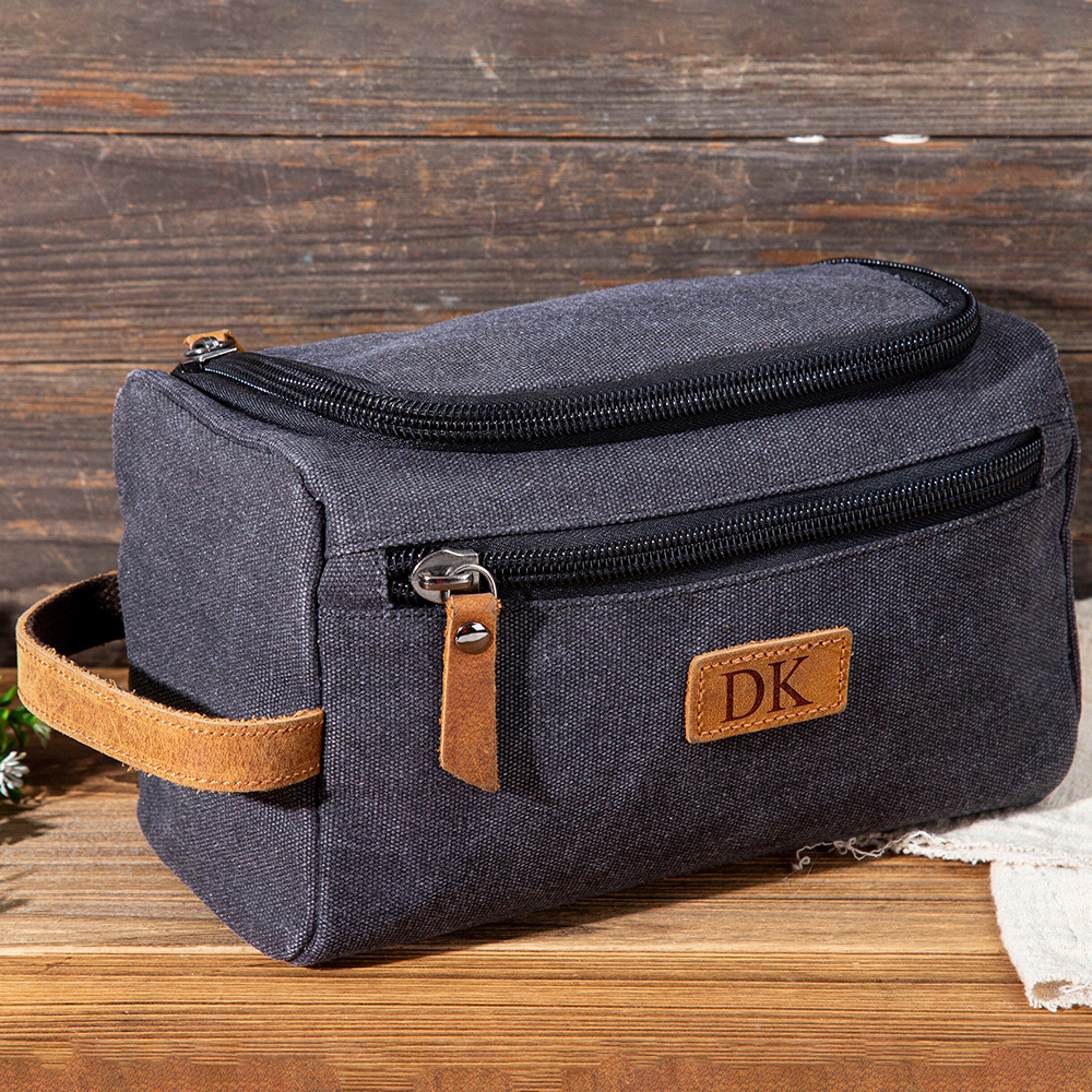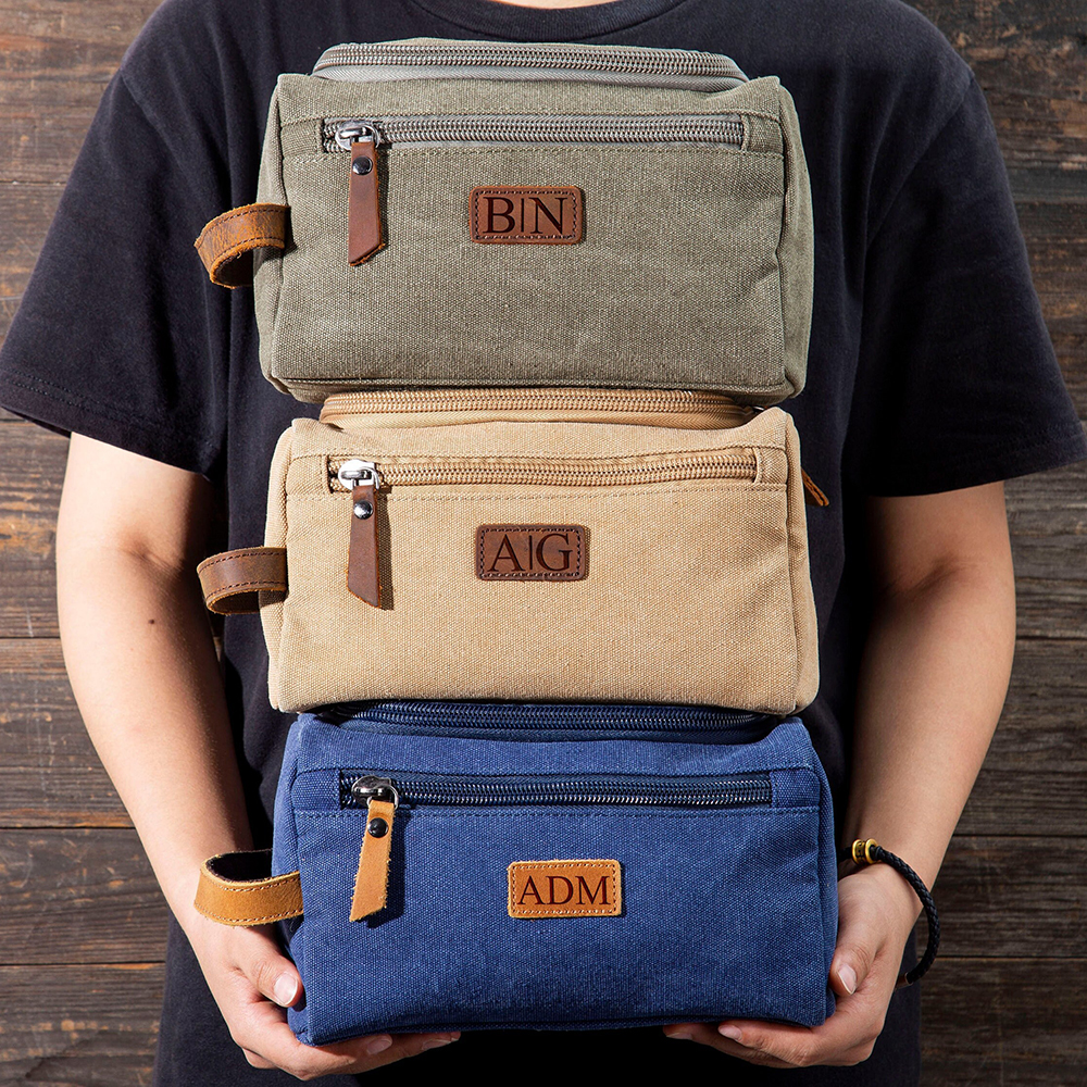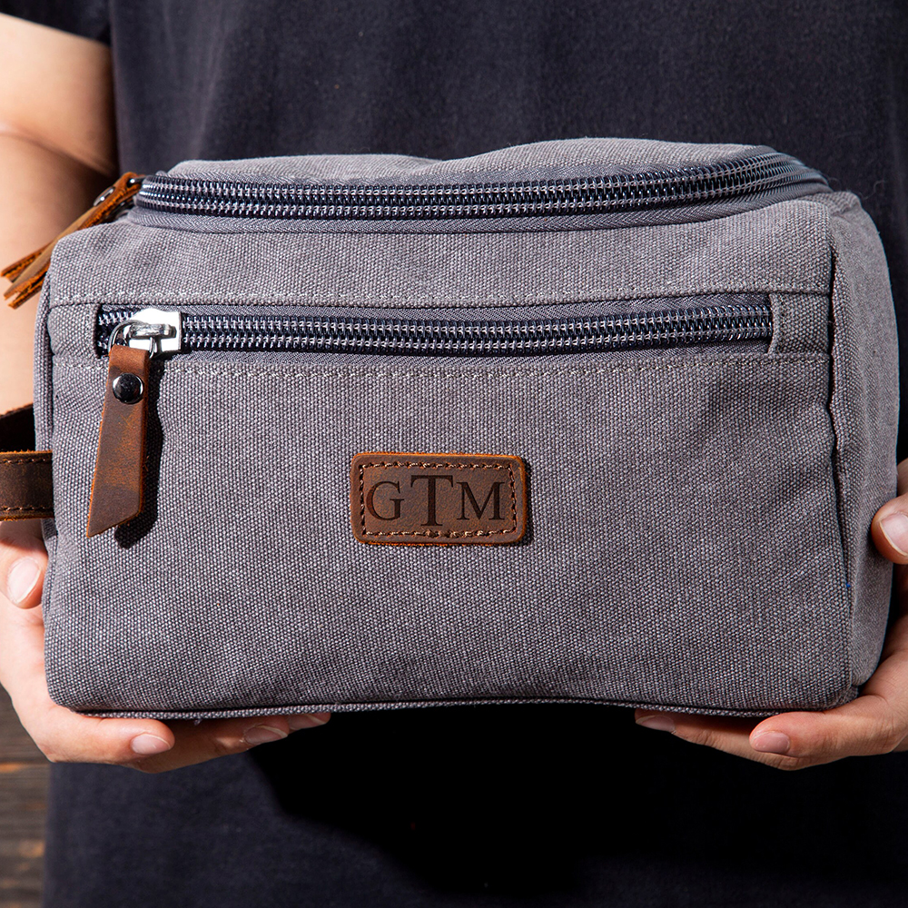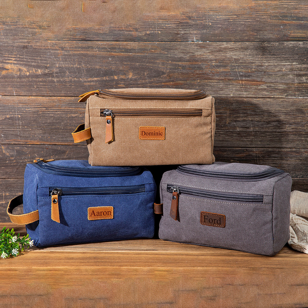 Large capacity men’s toiletry bag made of durable canvas, portable and customizable – perfect for travel or as a best man gift.