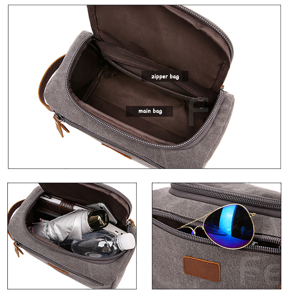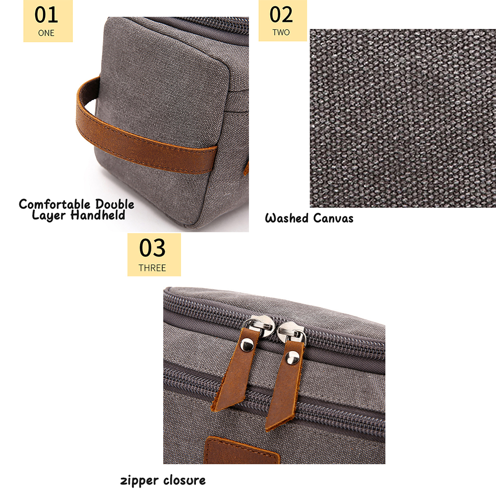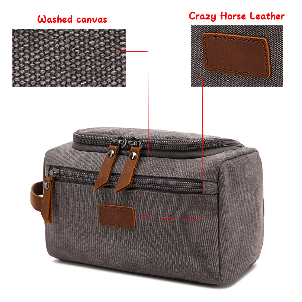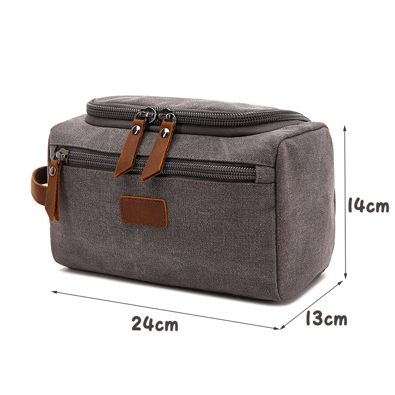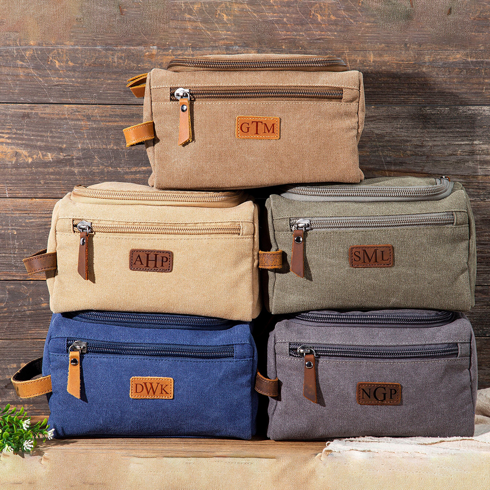 Large capacity men’s toiletry bag made of durable canvas, portable and customizable – perfect for travel or as a best man gift.