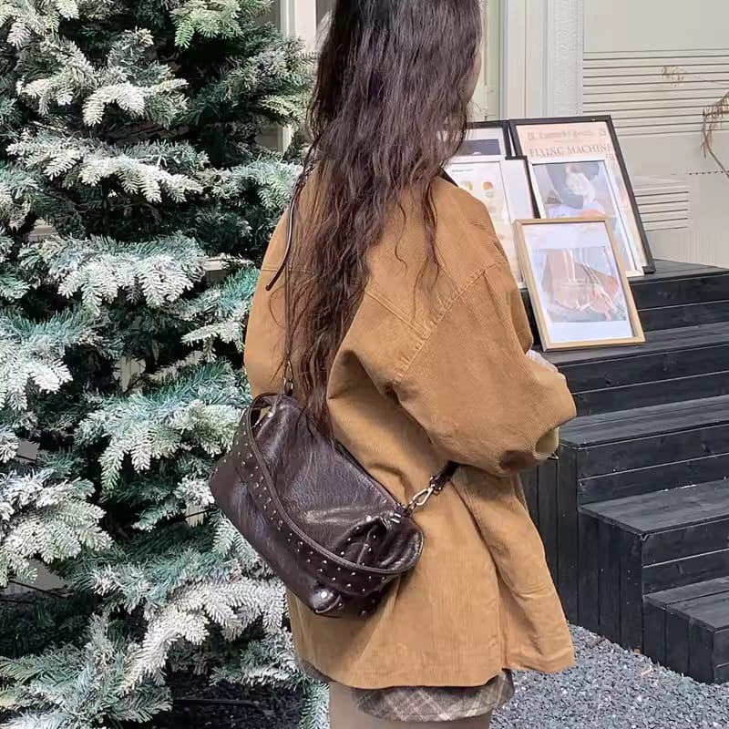Punk Style Rivet Leather Women’s Shoulder Bag – Large Capacity Casual Handbag