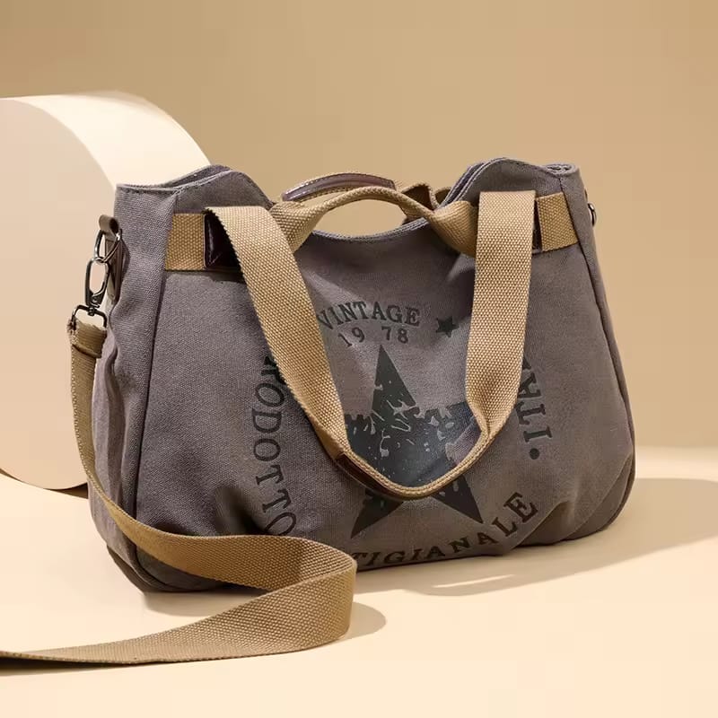 Women’s Casual Printed Large-Capacity Shoulder Bag – Canvas Crossbody Satchel with Multi-Pocket Design