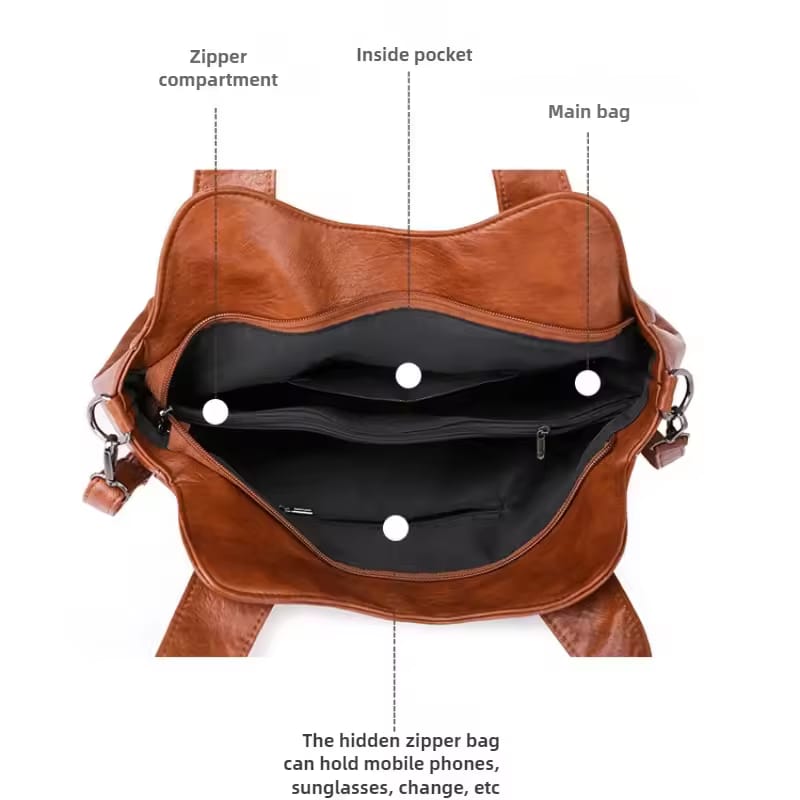 Women’s High Quality Leather Handbag – Designer Shoulder & Crossbody Tote Bag with Large Capacity for Everyday Commute