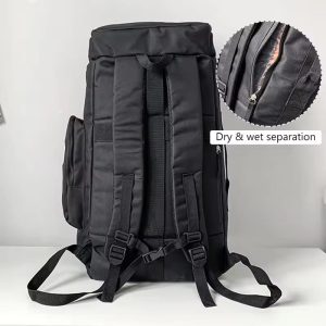 - Durable waterproof gym and travel backpack with dry-wet separation, laptop compartment, and skateboard holder — perfect for fitness, travel, or school.