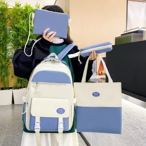 - Lightweight and stylish 4-piece schoolbag set for girls, featuring a large-capacity backpack, lunch bag, pencil case, and pouch.