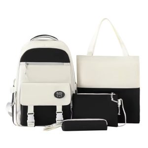 Simple Four-Piece Schoolbag Set for Girls – Large Capacity Lightweight Backpack