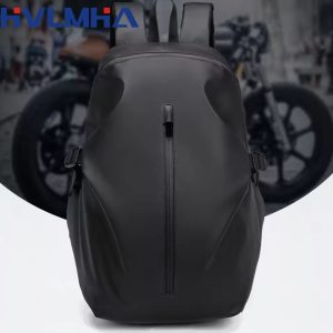 - Large-capacity waterproof motorcycle backpack with reflective safety strip, suitable for helmets, laptops, and travel essentials.
