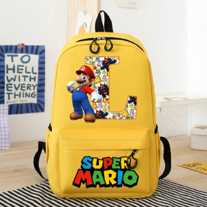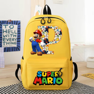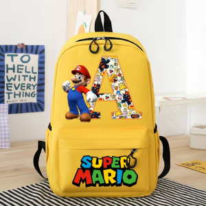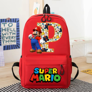 - Super Mario Bros cartoon school backpack with letter prints, adjustable straps, and roomy compartments for boys and girls.